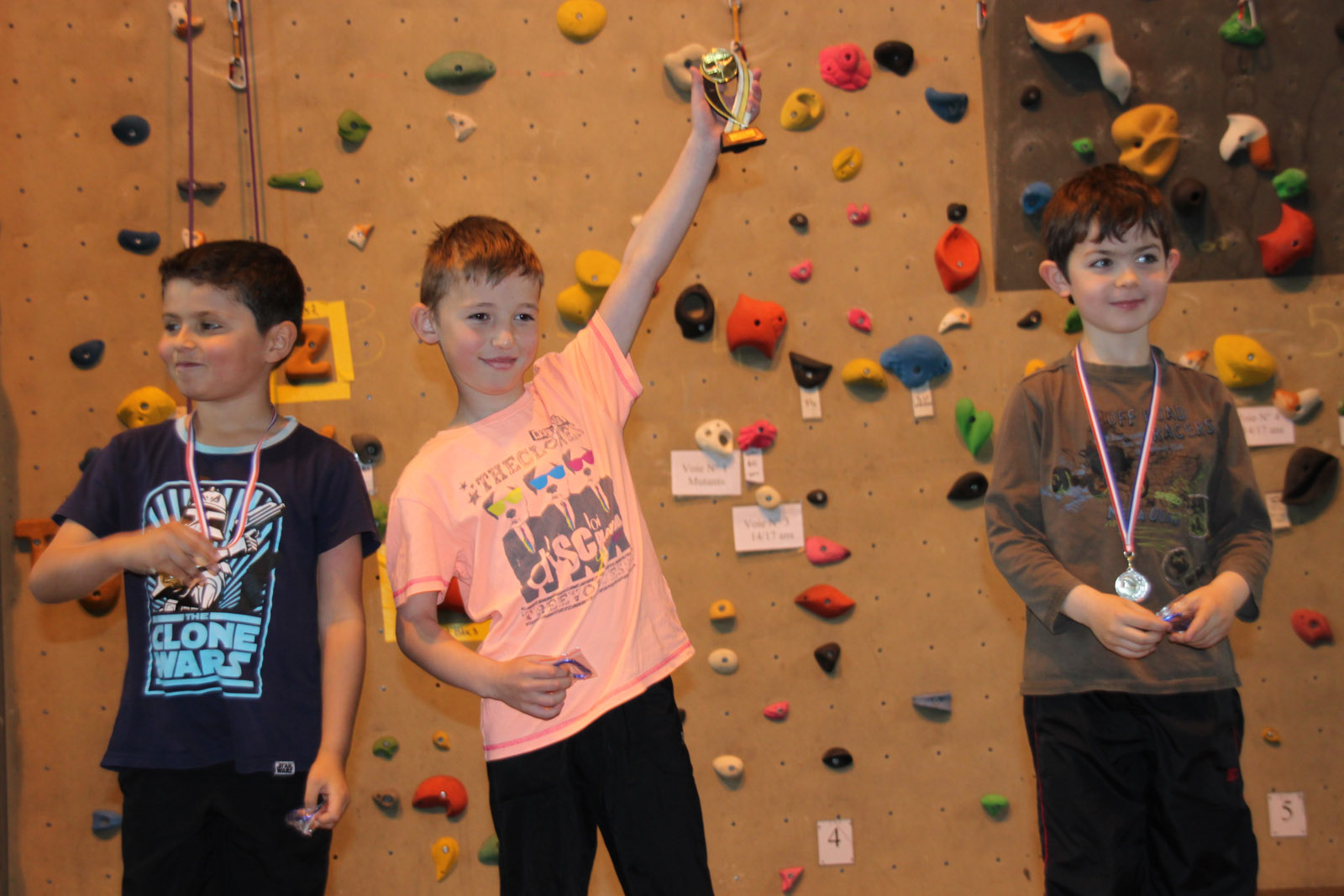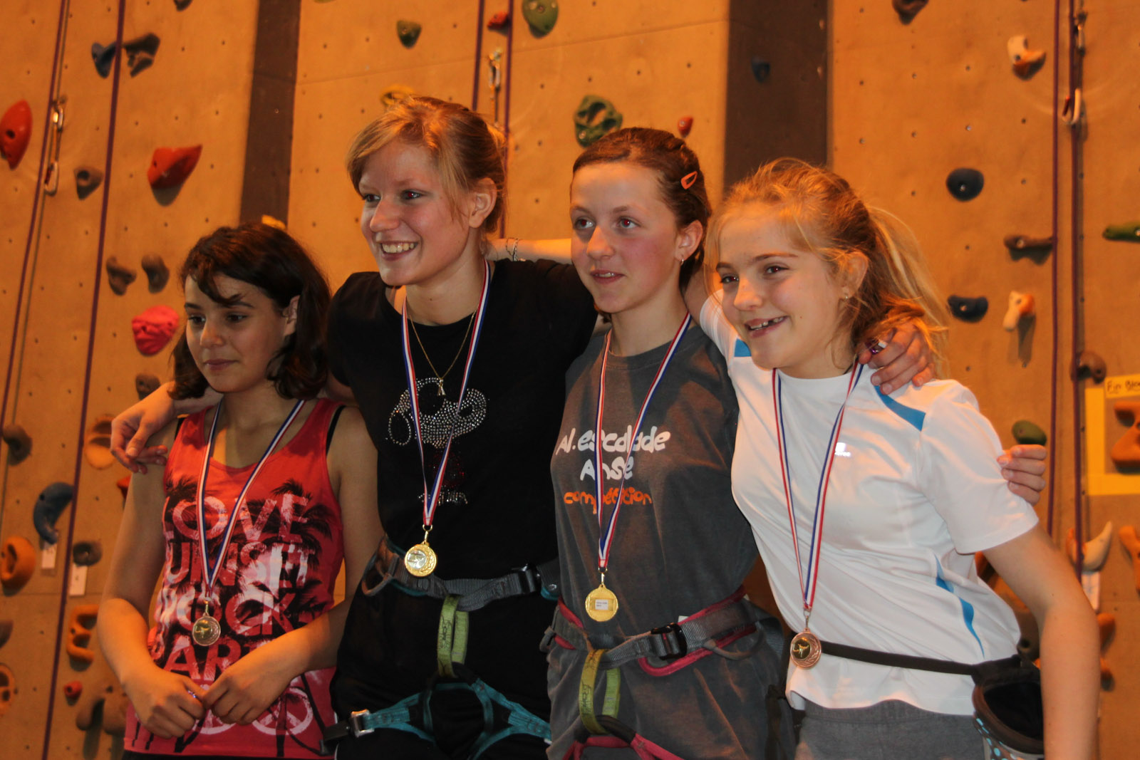 Les jeunes le matin ont pu montrer aux parents leurs qualités de grimpeur en herbe et l’après midi les plus grands se sont affrontés sur des voies allant de 6a à 7a+. La soirée s’est terminée au restaurant « chez Ginette » autour d’une bonne blanquette de veau ou chacun a pu commenter ses exploits