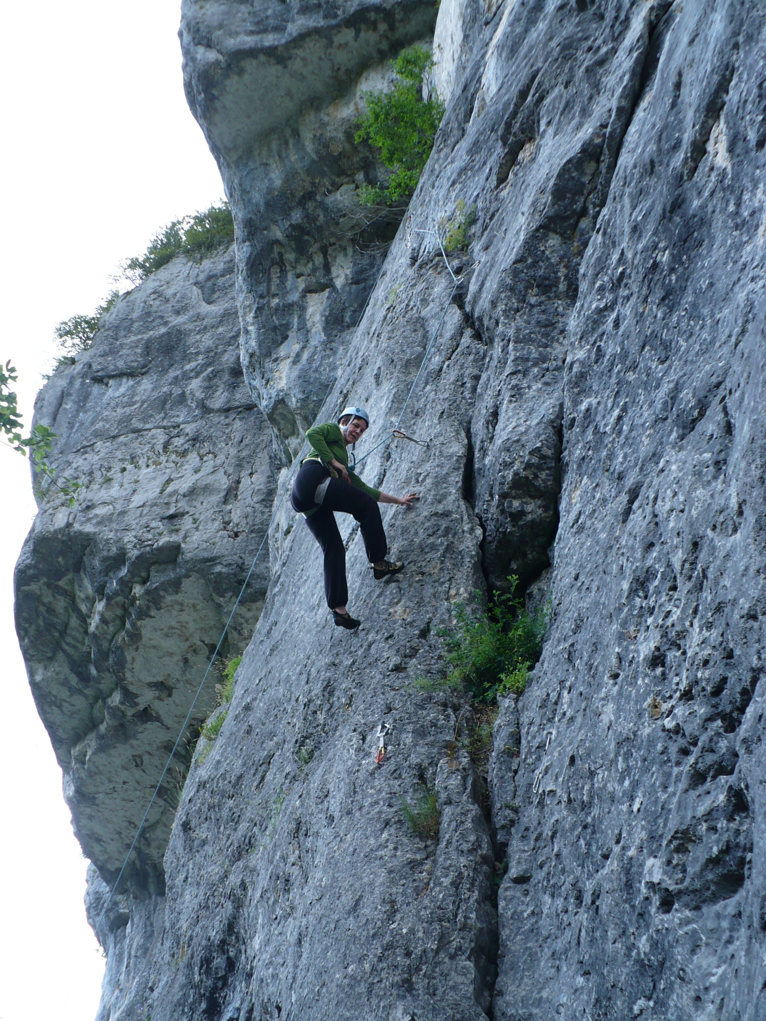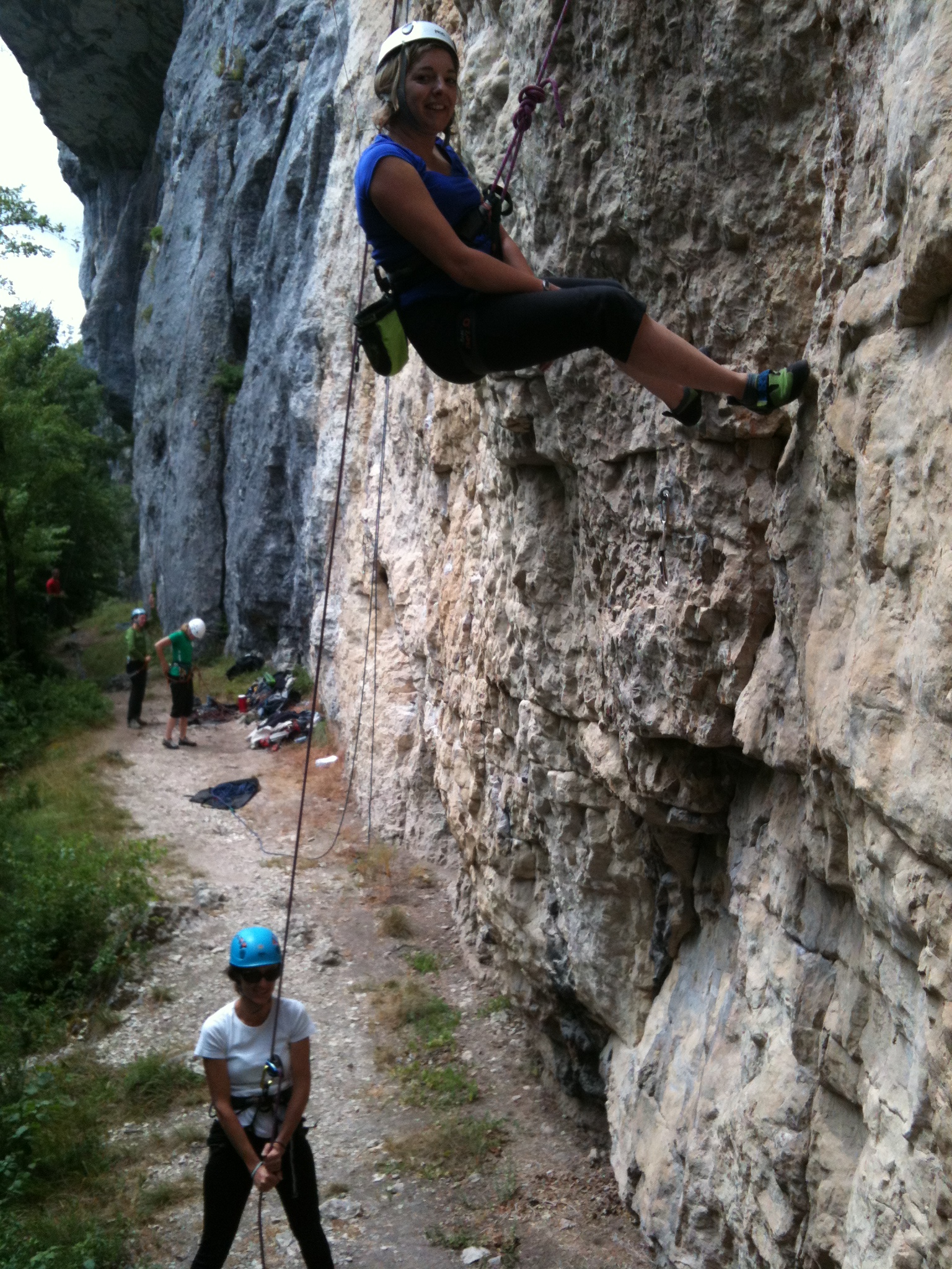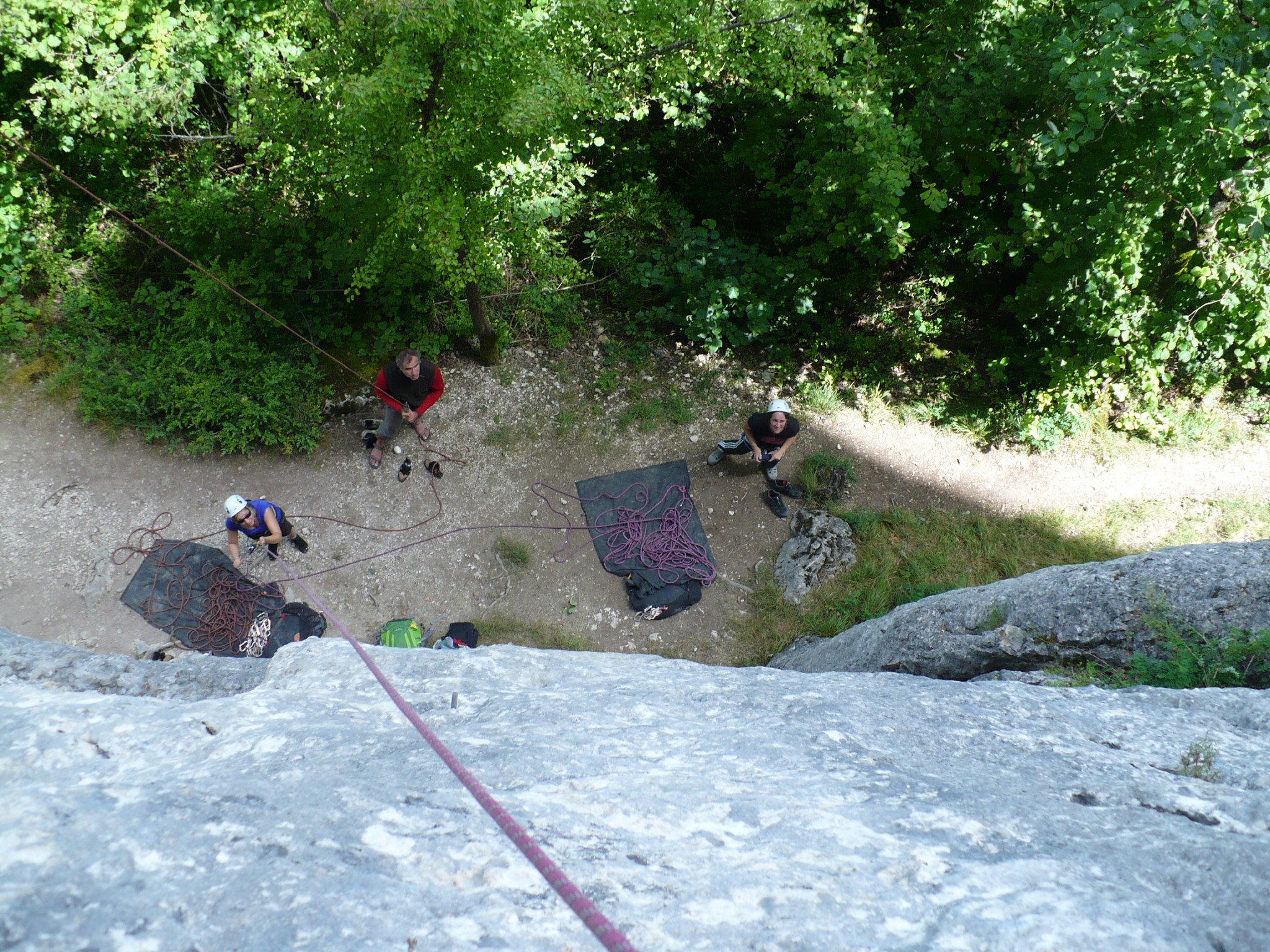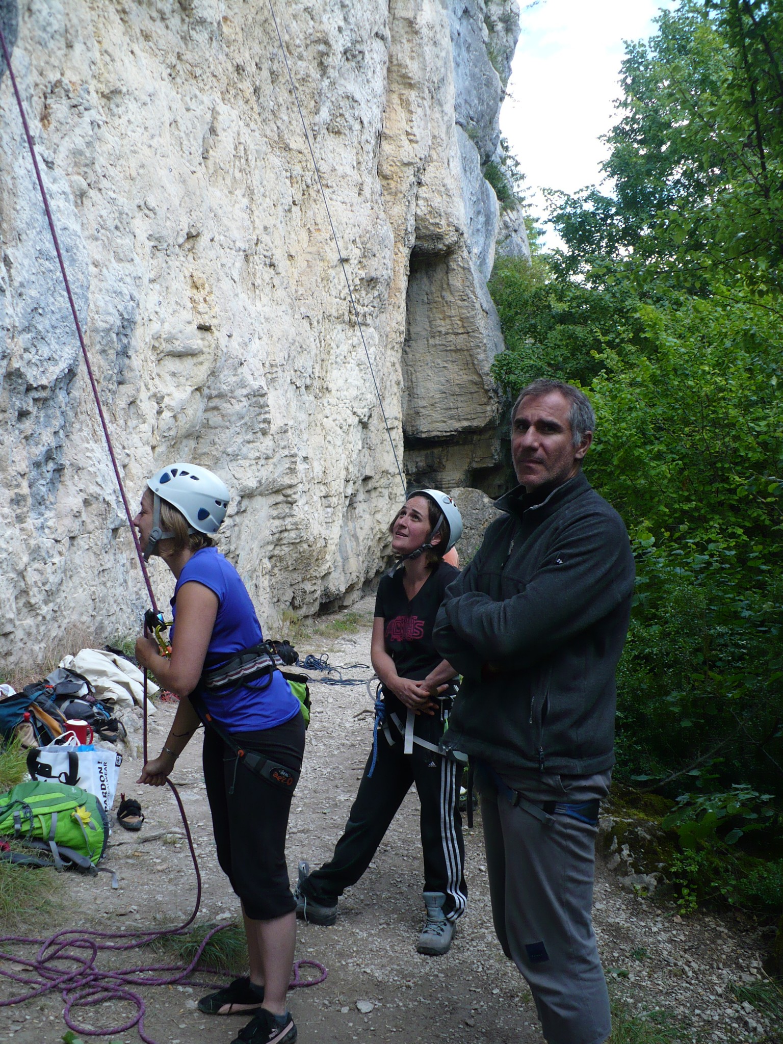 Les adultes sont allé grimper à Champfrommier. Après la grisaille du matin, le soleil a accompagné cette sortie découverte de la falaise.