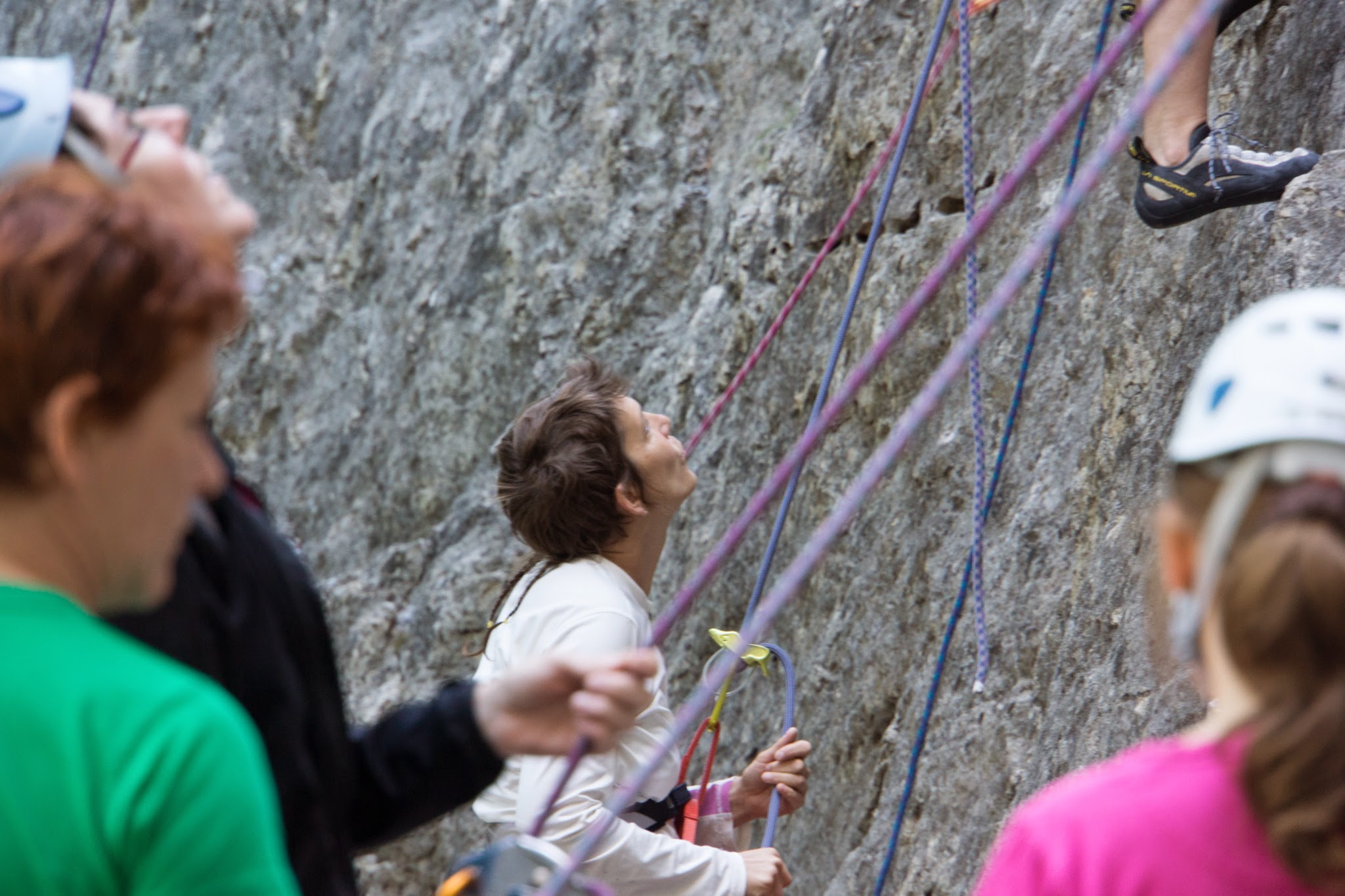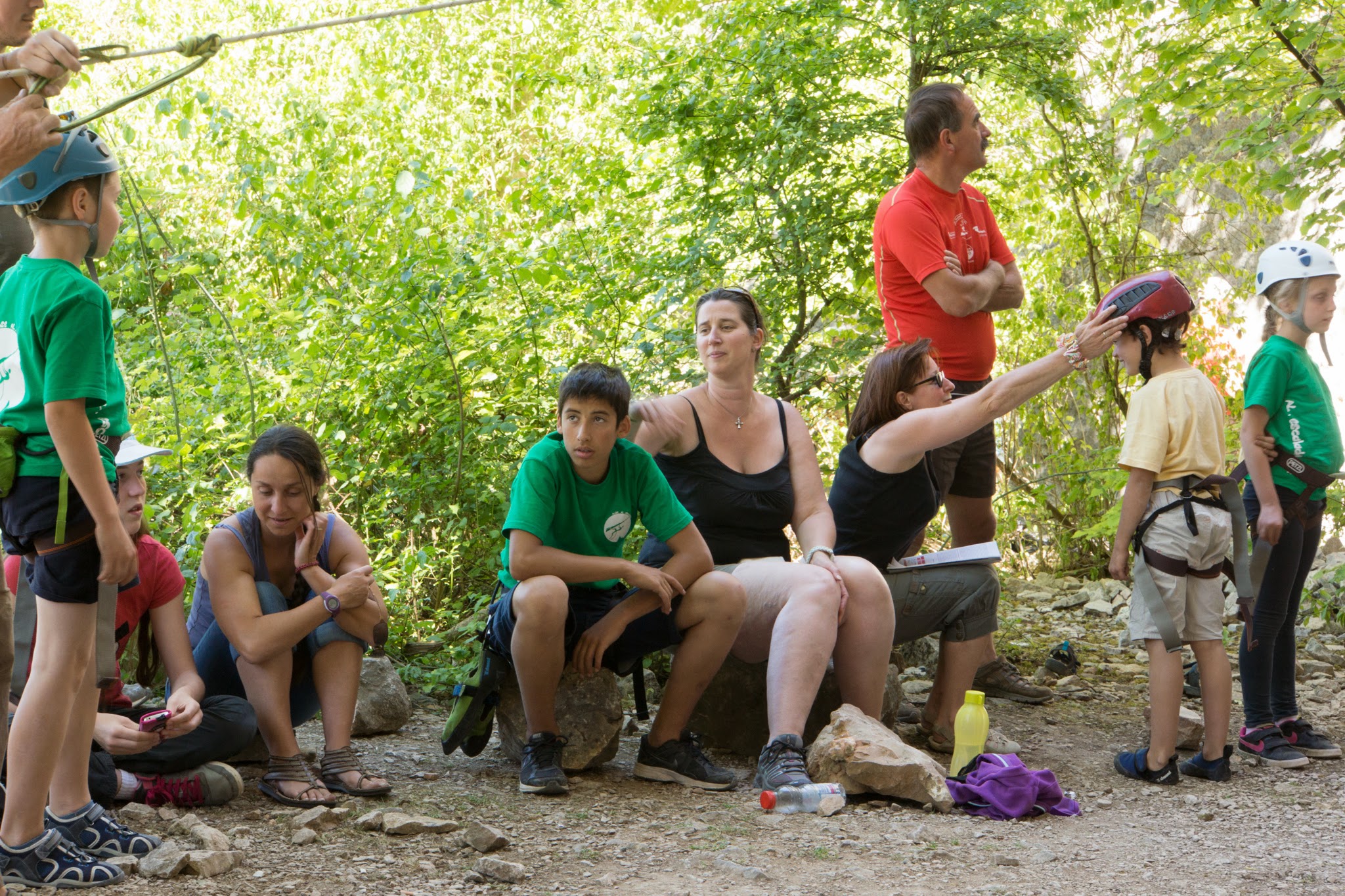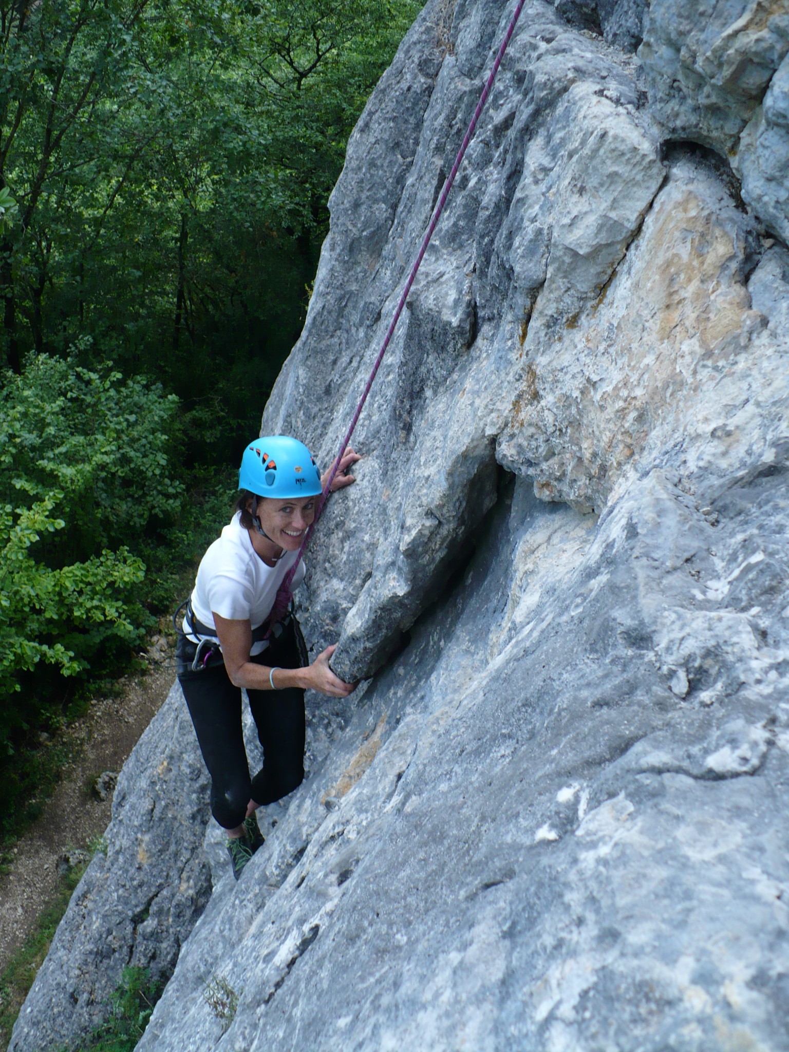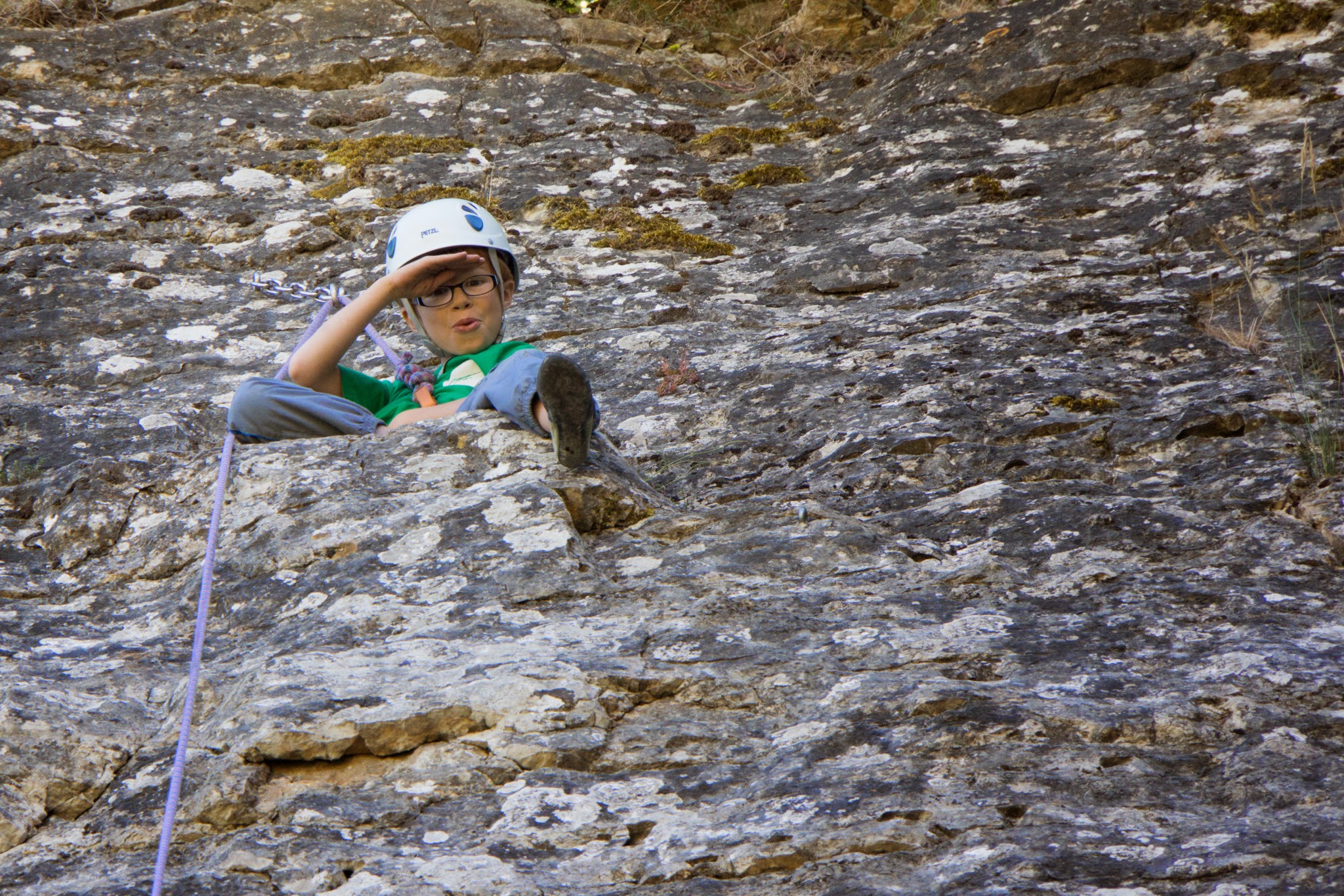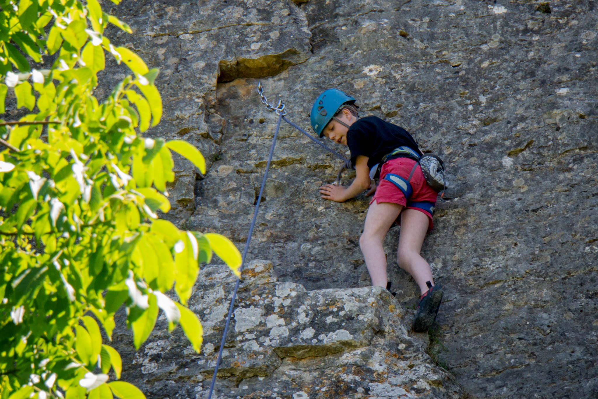 Les adultes sont allé grimper à Champfrommier. Après la grisaille du matin, le soleil a accompagné cette sortie découverte de la falaise.