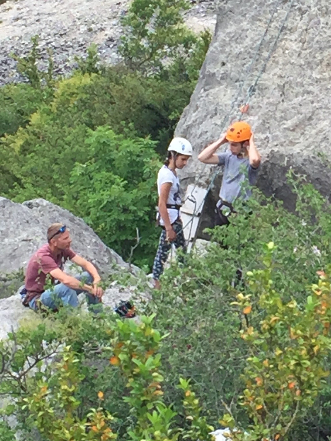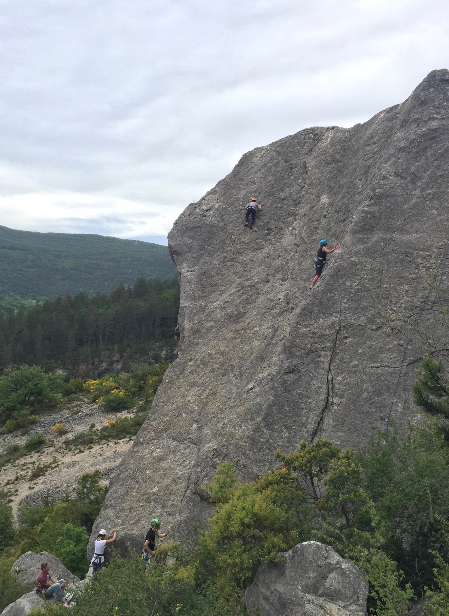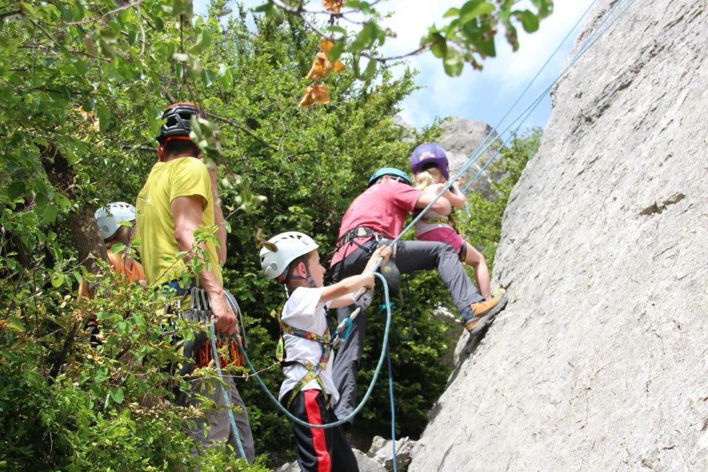 Nous nous sommes retrouvés sur le site du Claps, et nous avons commencé par quelques voies d’initiation pour les petits et les grands. Après quelques lancers de cailloux dans la Drôme, nous avons pique-niqué sous les arbres, pour s’abriter des quelques gouttes de pluie. Heureusement, la pluie s’est arrêtée et nous avons grimpé sur un autre secteur avec des voies plus longues. Les enfants n’ont pas arrêté, les adultes s’y sont essayés, les ados se sont appliqués. En fin de journée, il restait juste le temps de passer un moment dans la piscine du camping.