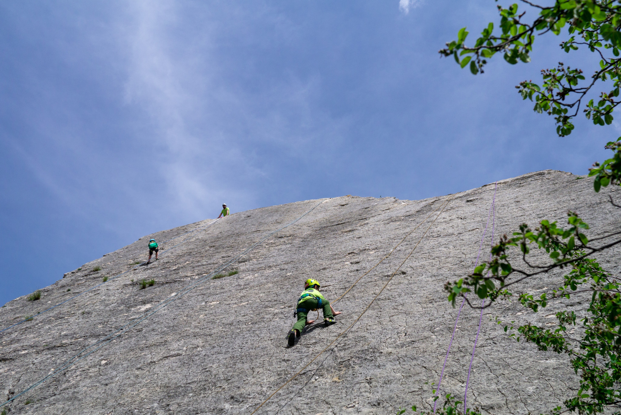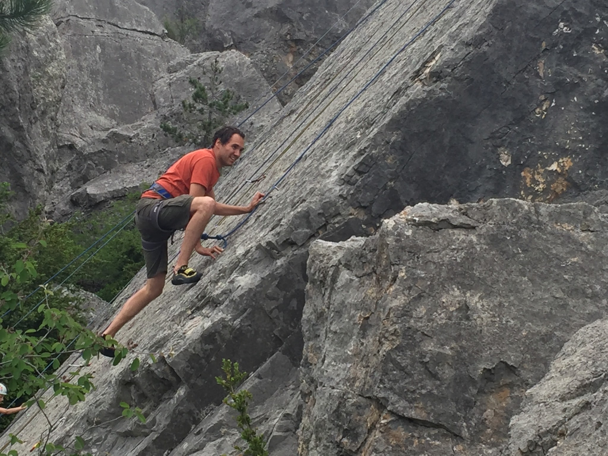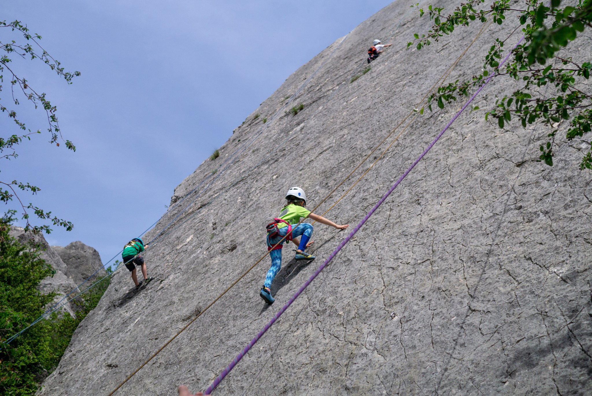 Nous nous sommes retrouvés sur le site du Claps, et nous avons commencé par quelques voies d’initiation pour les petits et les grands. Après quelques lancers de cailloux dans la Drôme, nous avons pique-niqué sous les arbres, pour s’abriter des quelques gouttes de pluie. Heureusement, la pluie s’est arrêtée et nous avons grimpé sur un autre secteur avec des voies plus longues. Les enfants n’ont pas arrêté, les adultes s’y sont essayés, les ados se sont appliqués. En fin de journée, il restait juste le temps de passer un moment dans la piscine du camping.