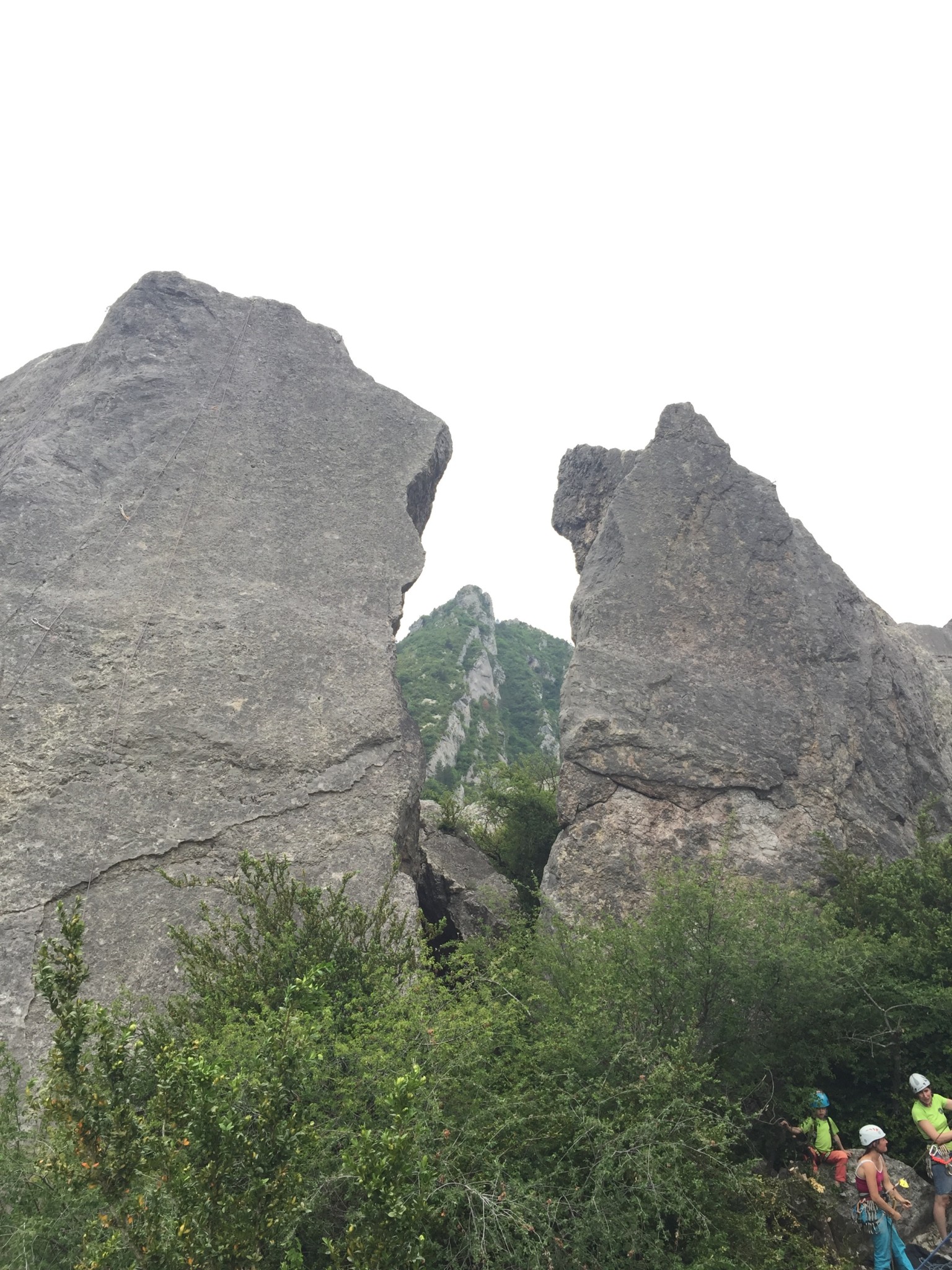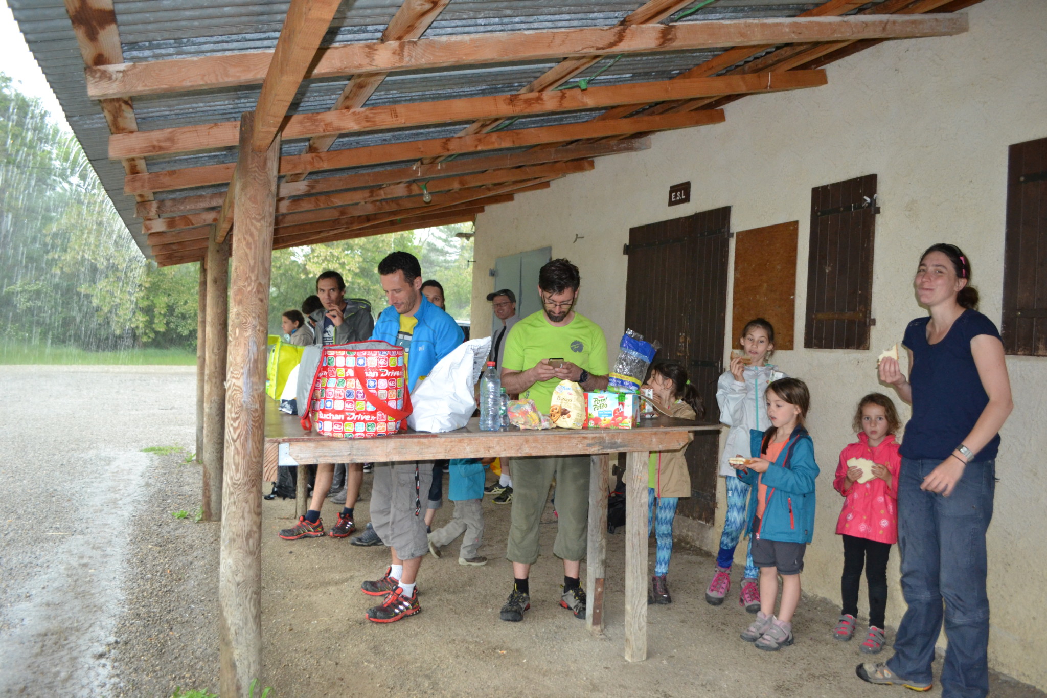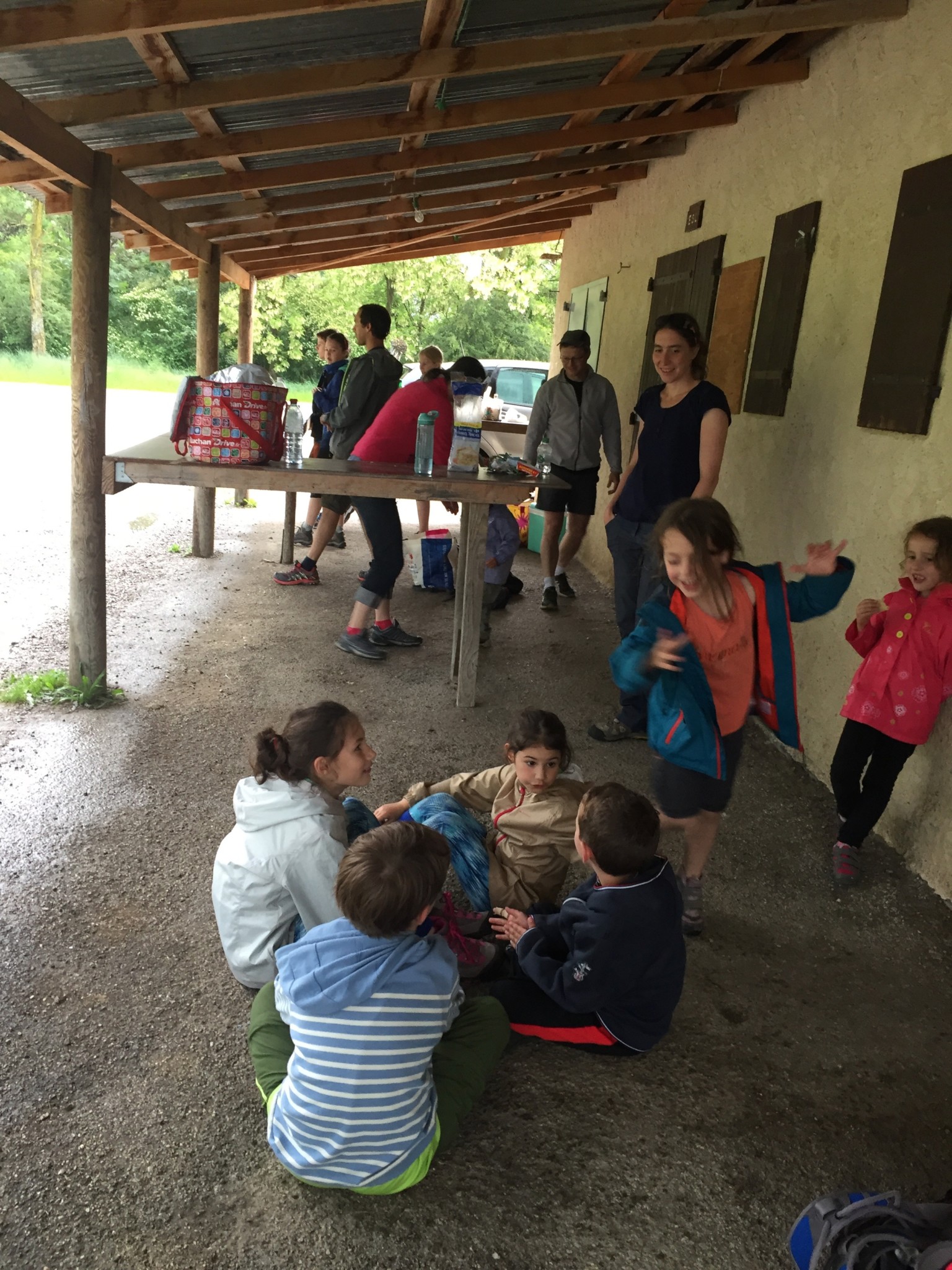 Le dimanche, le réveil sous la pluie nous a un peu refroidis, mais nous sommes tout de même retournés grimper au Claps. Nous avons pu profiter un petit moment puis nous avons plié en voyant l’orage arriver. Après quelques recherches, nous avons fini par trouver une tribune de stade pour pique-niquer au sec et terminer ainsi le week-end.